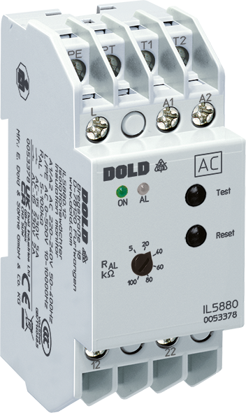 IL 5880 -eristystason valvontarele valvoo eristysvastusta yksivaiheisissa ja kolmivaiheisissa jänniteverkoissa (IT-verkoissa), joiden nimellisjännite on enintään 0…500 V AC. Erillinen syöttöjännite (apujännite) mahdollistaa valvonnan myös silloin, kun järjestelmä on jännitteetön. Laitteessa on LEDit toimintatilojen ilmaisuun ja hälytysrajan asetus onnistuu helposti etupaneelin potentiometrin avulla.